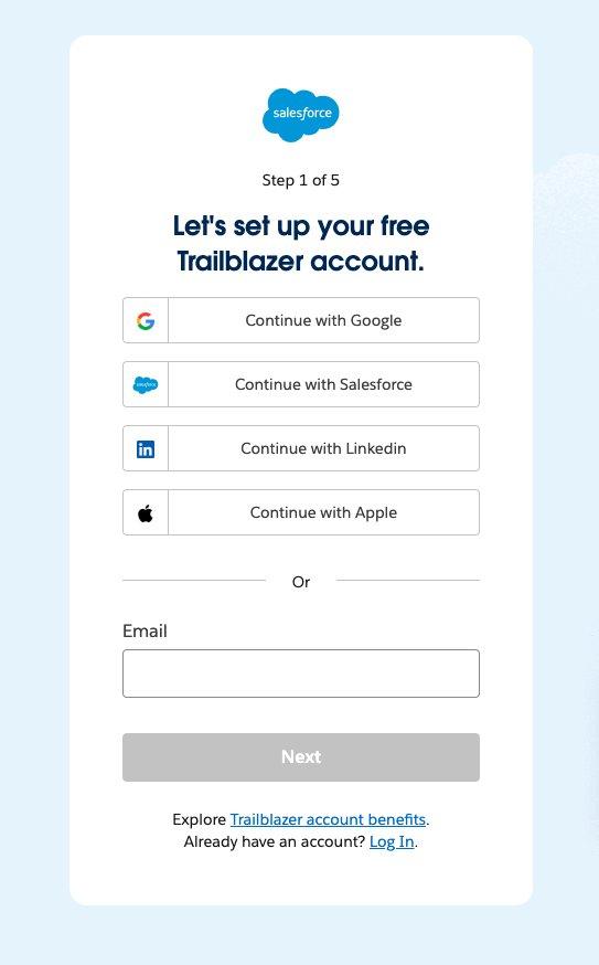 サインアップするアカウントを選択します。(Salesforce、メール、Google、LinkedIn のいずれかを使用してサインアップできます。)