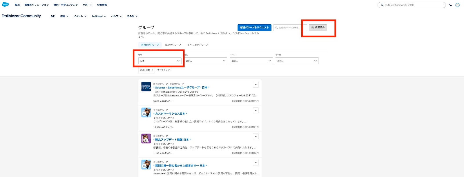 A:一部のグループはSalesforceライセンスを保有するユーザーがご利用いただけます。ご利用いただいている製品は問いません。Trailblazerアカウントについてはこちら(Salesforce ヘルプ ドキュメントへ遷移します)をご覧ください。