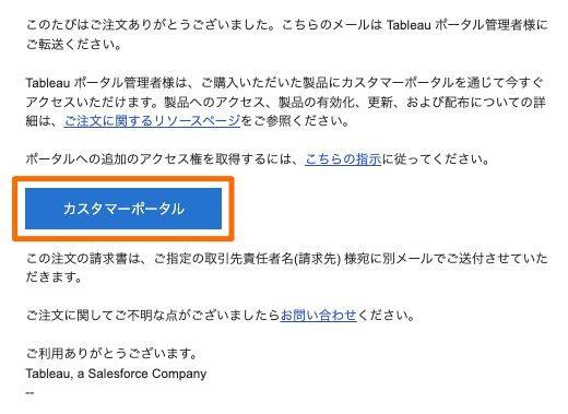以下のように届いたメールから、カスタマーポータルを開設してください。