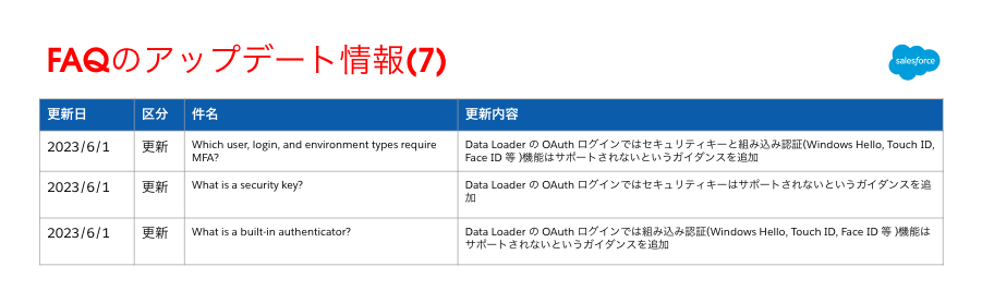 「Salesforce 多要素認証に関するFAQ」ナレッジに、英語版のみですが、6月1日に更新が入っています。