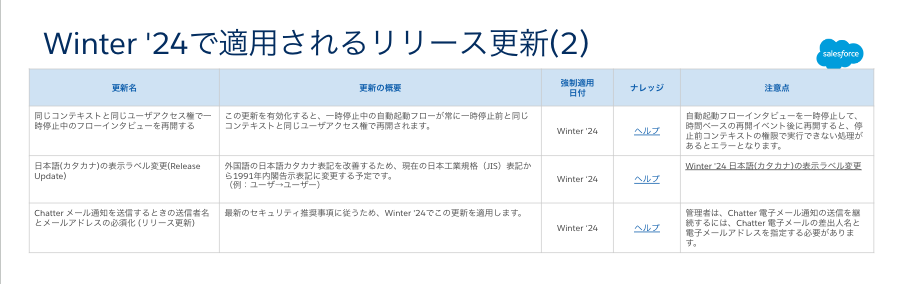 上記は、次期バージョンである Winter ’24 で適用予定のリリース更新のご紹介です。