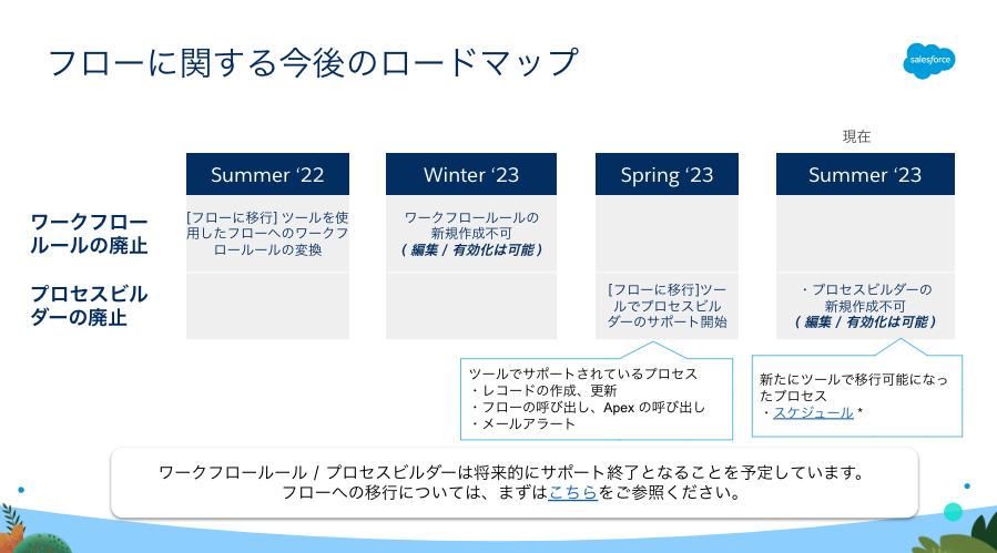 これまでのアナウンスの通り、Summer '23 のリリースでプロセスビルダーは新規作成できなくなりました。