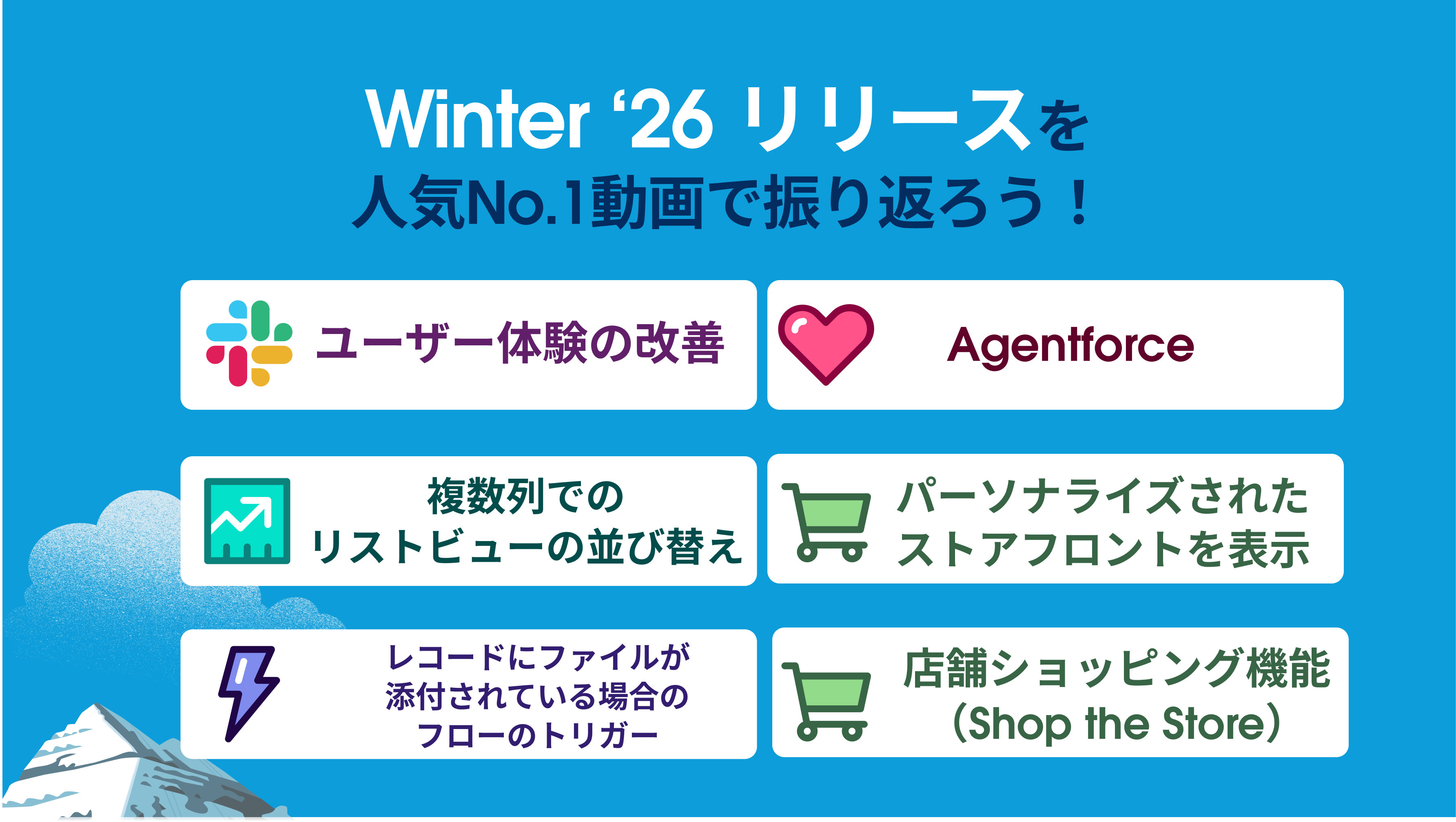 Winter ‘26 リリースでユーザー人気No.1だった動画を製品ごとにピックアップ。